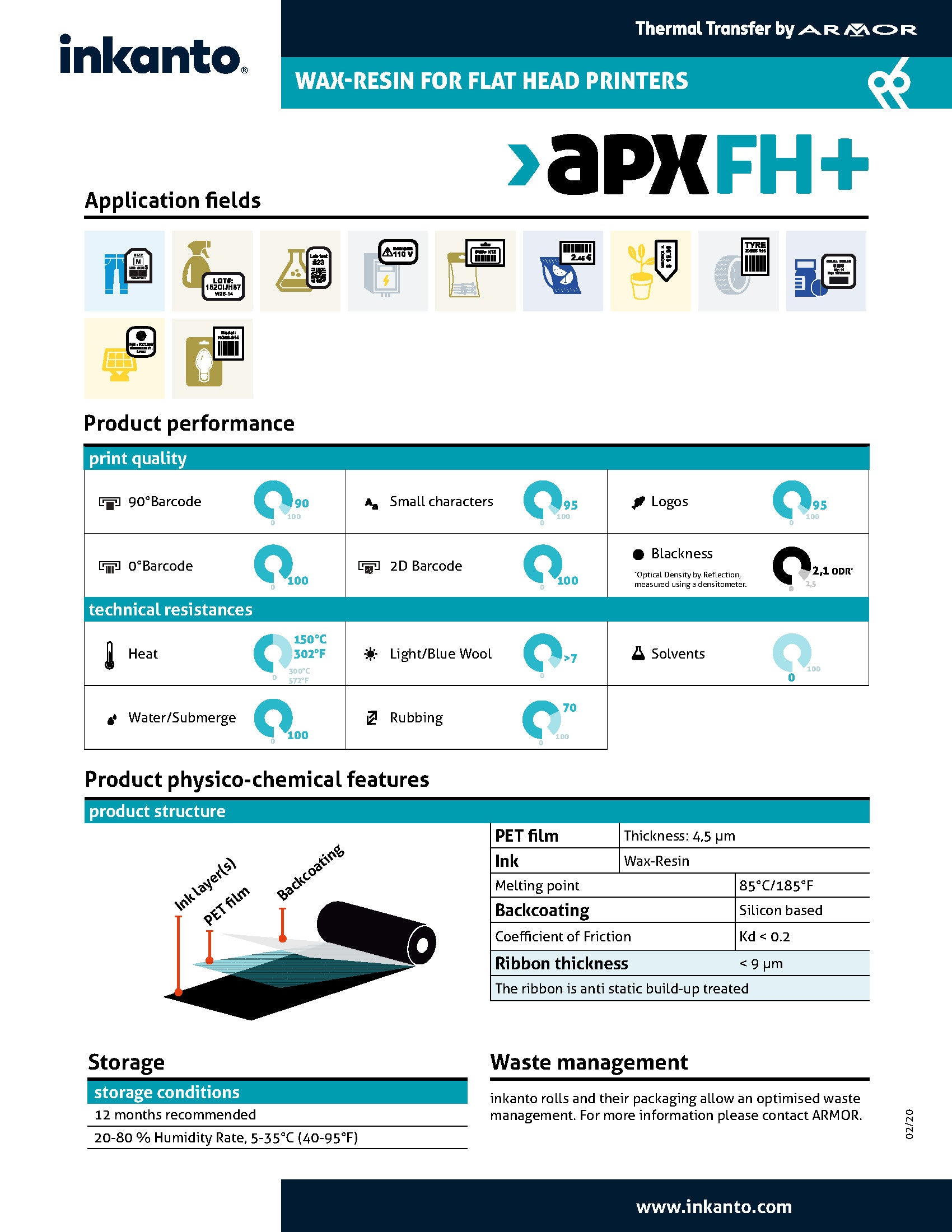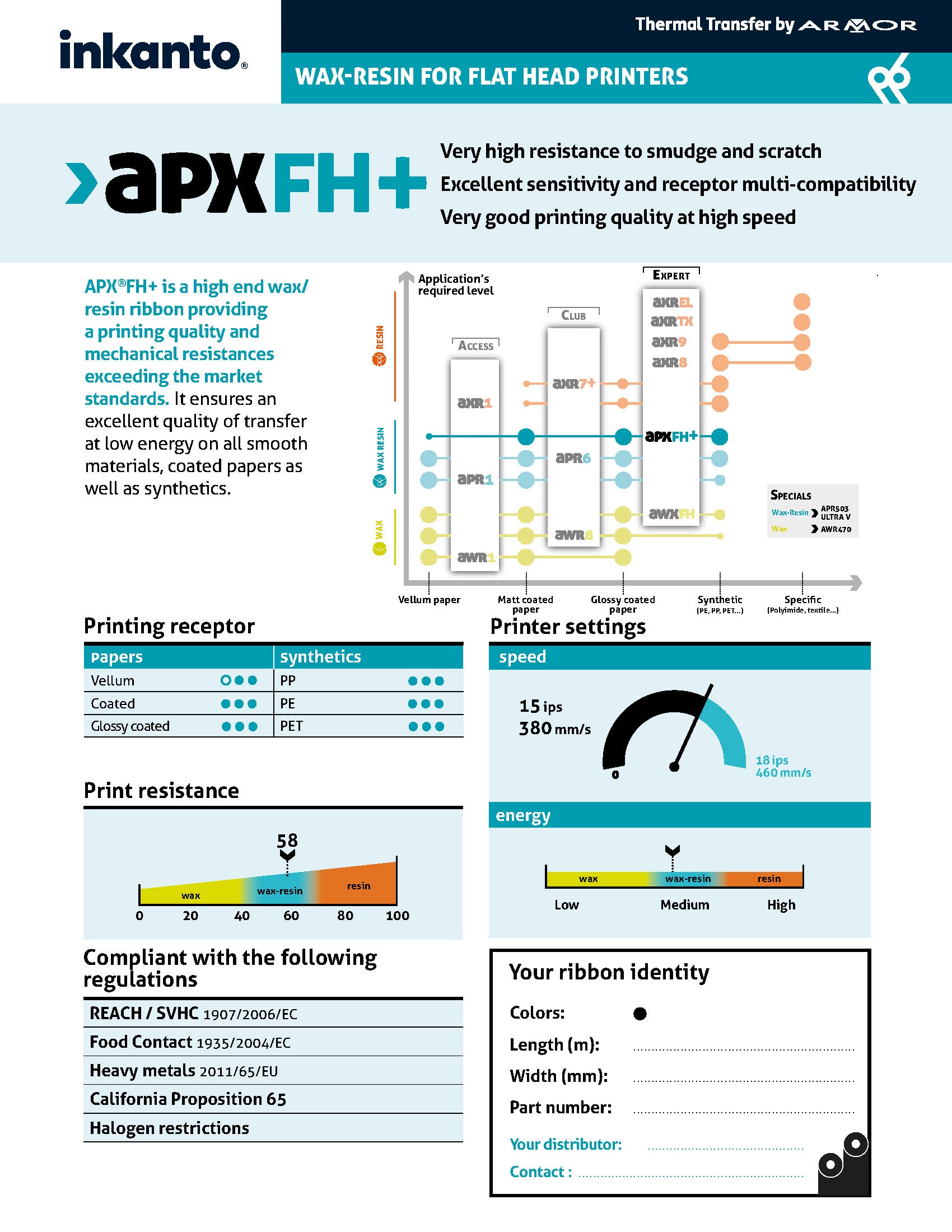 - Ribbon Formulation: Wax/Resin (APX FH+)