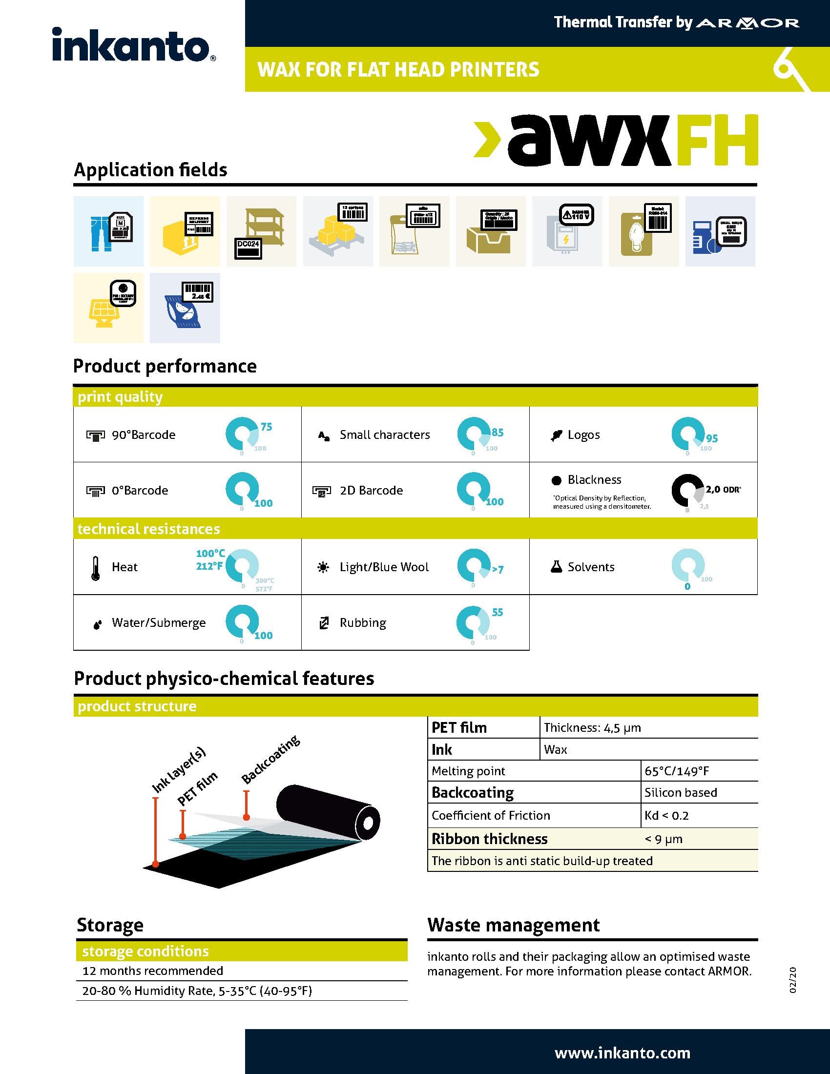 2.36" X 1476 FT (450M) Armor Inkanto AWX FH Wax Ribbons (Outside Ink), 12 Pack/Box