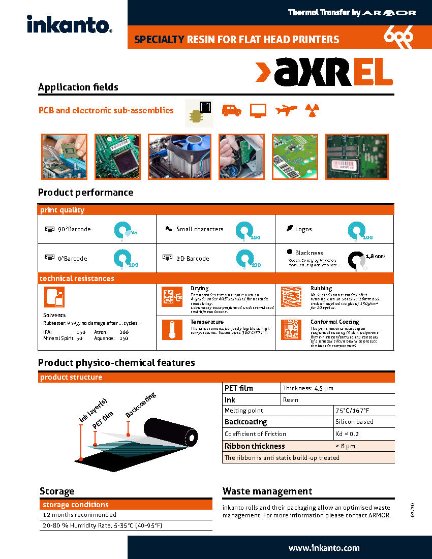 8.66" X 984 FT (300M) Armor Inkanto AXR EL Resin Ribbons (Outside Ink), 10 Pack/Box